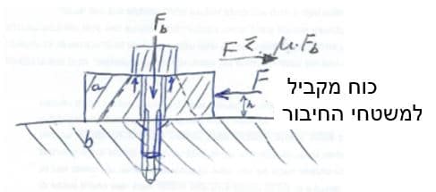 3. למרות שהתפקיד העיקרי של הבורג הוא ליצור כח מתיחה צירי — אין לאסור על שימוש בו גם כפין שעובד לגזירה (בין אם הבורג אפוץ ובין אם לא).