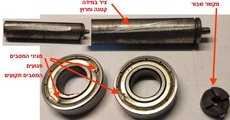 בפרוק מצאנו, מקשר (Coupling) שבור, מסבים תפוסים בגלל עיוות במגנים, ציר הגלגלון במידה קטנה וחרוץ באכזריות.