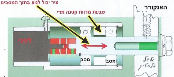 אם יפעל כוח על הציר לכיוון שמאל, הציר יכול להחליק בתוך המסבים שמאלה, ומה שיעצור אותו יהיה המקשר האדום שישען בעצמו על מסבי האנקודר הסיבובי הקשור בשני ברגים היקפיים לגוף.